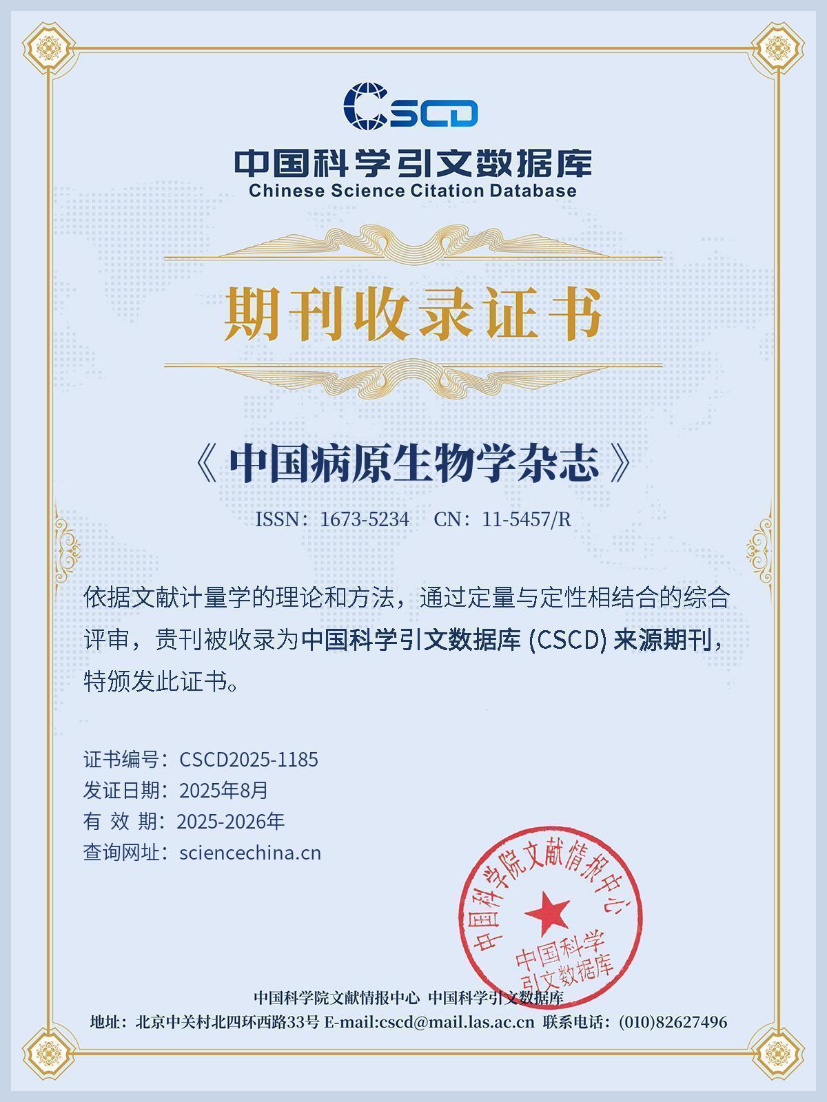 CSCD收录证书2025-2026-中国病原生物学杂志